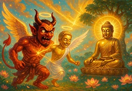 Reflexão Final – A FÉ sem intenção correta se distorce. Mérito misturado com más ações não pode gerar verdadeira segurança. Esta história nos lembra de fazer o bem com intenção pura, evitar prejudicar os outros e respeitar as Três Joias (Buddha, Dhamma e o Sangha). Em última análise, o karma segue a mente — não o ritual.