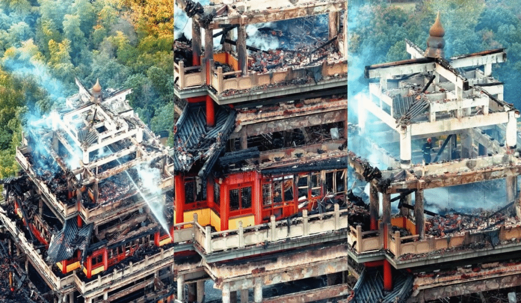 O fogo começou por volta das 11h da manhã (horário local) e se espalhou rapidamente pelo Pavilhão Wenchang, uma construção de madeira em estilo tradicional. As chamas foram controladas ainda no mesmo dia pelos bombeiros, e felizmente não houve vítimas. Apesar disso, o pavilhão foi completamente destruído, restando apenas parte da estrutura.